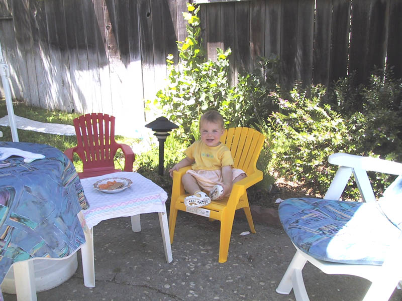 We barbecued because the weather was so nice. I have my own chair, so I could eat with Mommie and Daddie. Because I was wearing a yellow dress, I' ve choosen my yellow chair :)