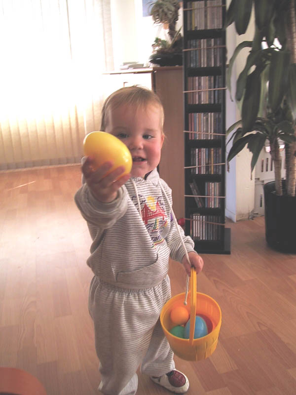 On Easter day, I was hunting for eggs in the house. I found all the eggs and dropped them in my basket.