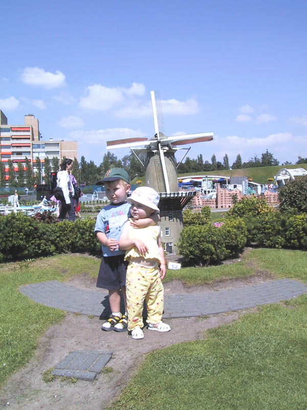 We went to Madurodam (Cities made in small sizes) and I am standing with Merlijn in front of a Dutch Mill.
