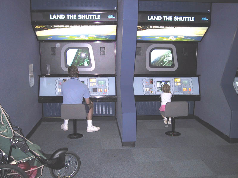 We were at the Space Center in Houston. That is where Niel Armstrong went to the moon. It was a really nice day. Here we try to land a space shuttle safe. Who can do it first?