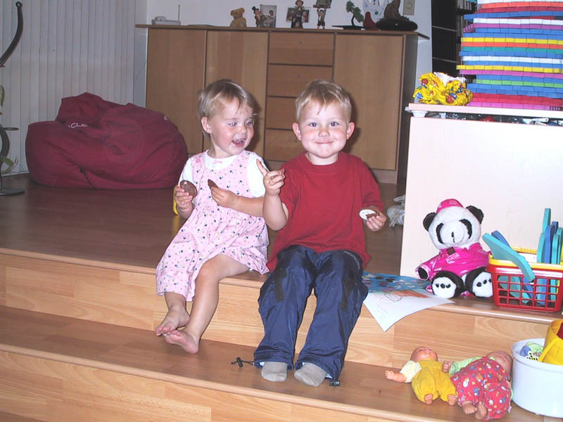 vakantie en hier zit ik op de trap met Merlijn. Nu kunnen we lekker samen