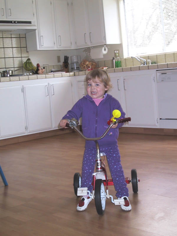 I've got a tricycle with a horn for my birthday from my parents. I show it to you on this picture.