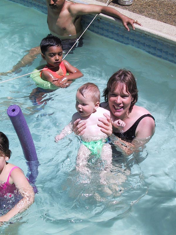 After the play we had a barbecue and swimming. Elroy liked the swimming pool at school too.
