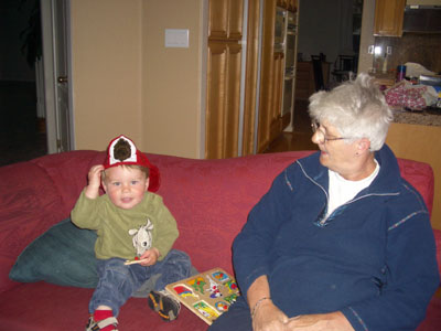 Grandma Saltzherr visited us in March. That was fun! She saw our new house and how we live. Also she saw the kids!