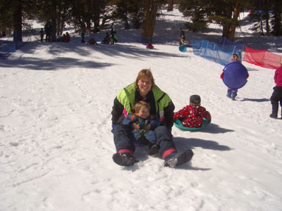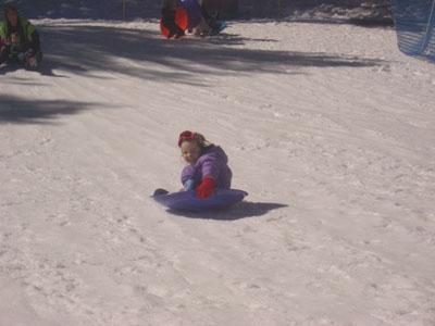 Sledding from the mountain all by herself. There goes Joyce.