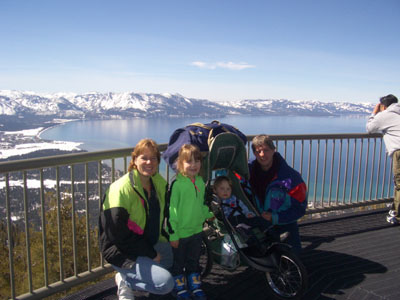 Halfway at the gondola 'Heavenly'. Behind us Lake Tahoe.