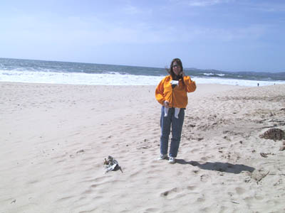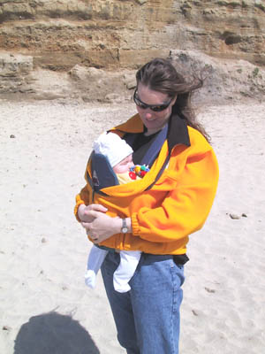 For the first time at the beach. It was very windy!