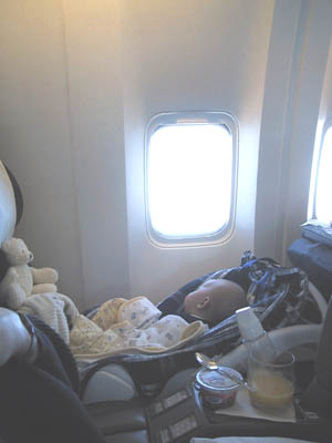 Voor het eerst in het vliegtuig op weg naar Nederland.