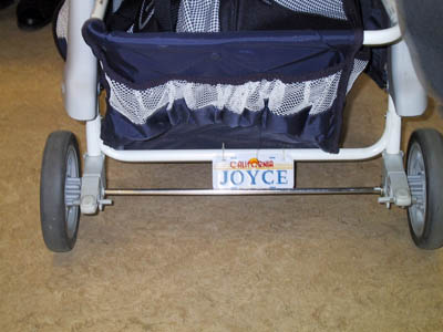 My stroller has a license plate. Everybody knows that this stroller belongs to me