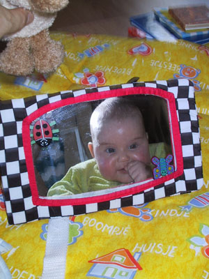 Als ik op mijn Boppy lig kan ik alles veel beter zien.
