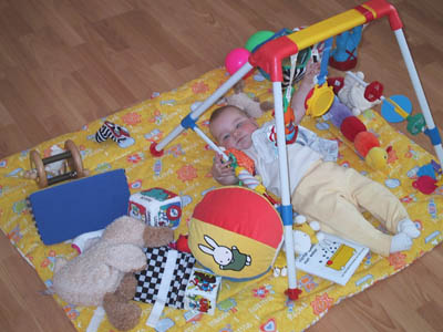 Hier lig ik tussen al mijn speelgoed. Kun je mij nog vinden?