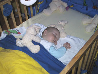 One time I put my bunny above me, all by myself. I am still dreaming on this picture.My daddy found me like this in the morning.