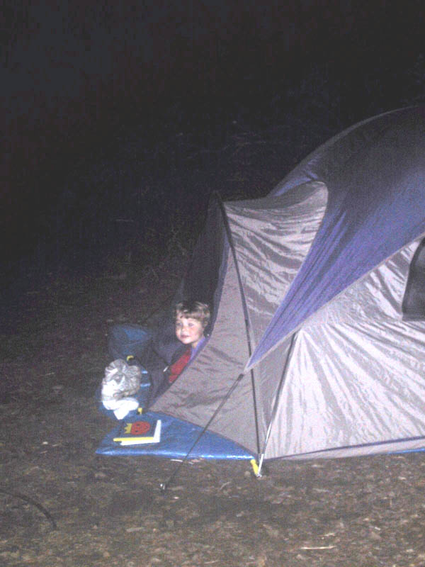 Ik moest slapen, want het was al donker, maar ik vond alles veel te interessant. Hier kijk ik even om het hoekje wat iedereen aan het doen was.