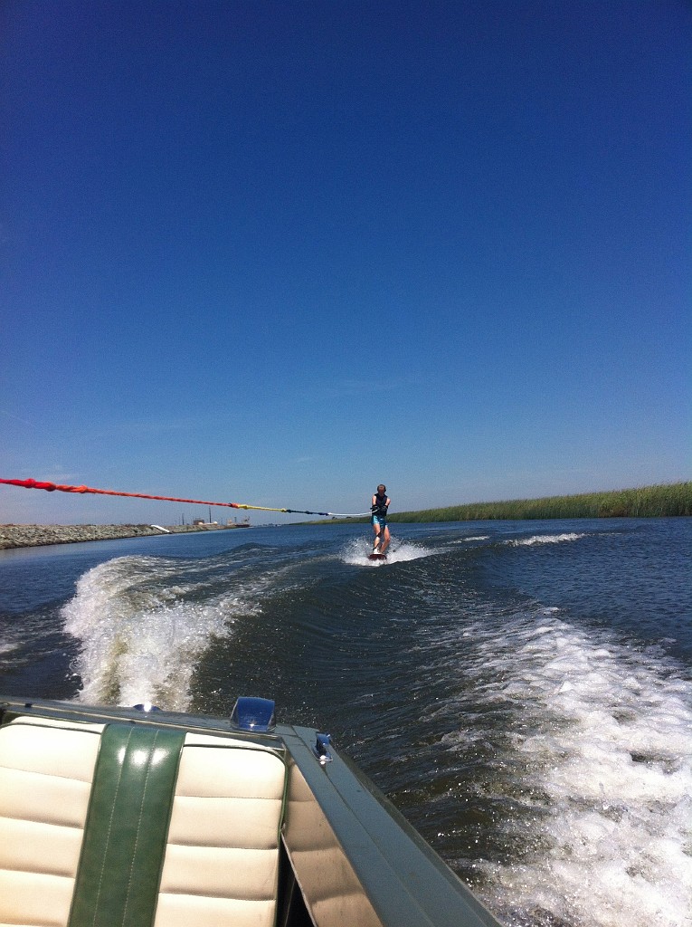 Joyce got up on the wakeboard for the first time